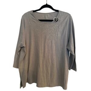 Allison Daley gray 3/4 sleeve embellished top, Size 1x