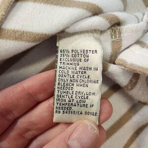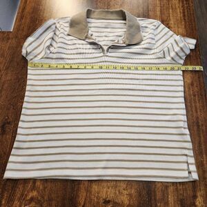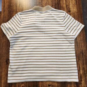 Allison Daley white and gold horizontally stripped collared short sleeve polo top. Polyester cotton blend. Women's petite large.