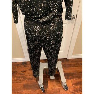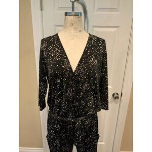 Allison Joy Black & White Speckled 3/4 Sleeve V-Neck Jumpsuit, Size Small