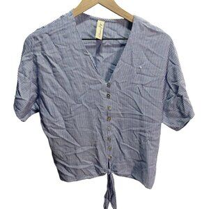 Allison Joy Blue Striped Button Up Tie Blouse XS Casual Summer