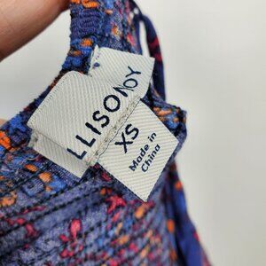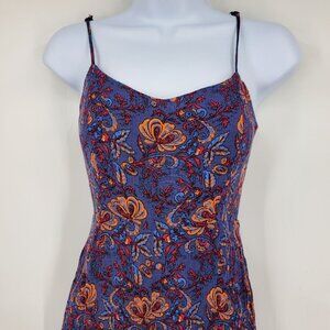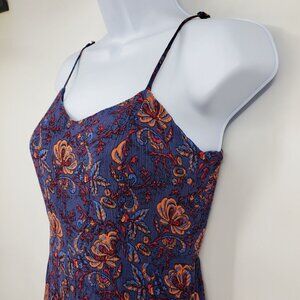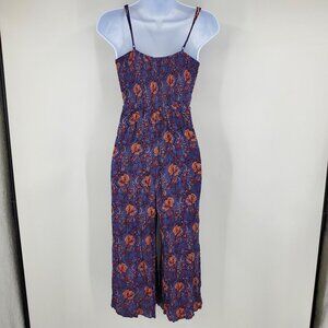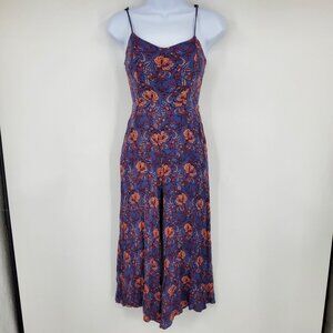 Allison Joy Blue and Orange Floral Print Flowy Wide Leg Tank Top Jumpsuit XS