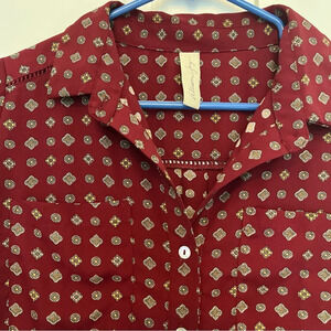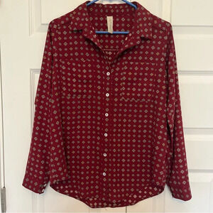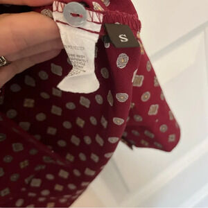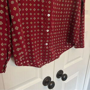 Allison Joy Evereve Button Blouse Maroon Print Long Sleeve Collared Size Small