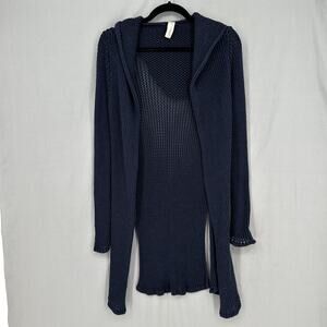 Allison Joy Evereve Cardigan Sweater Small Navy Blue Hooded Open Knit Beachy