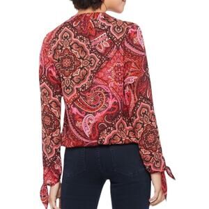Allison Joy Evereve Pink Paisley Print V-Neck Tie Sleeve Blouse Top