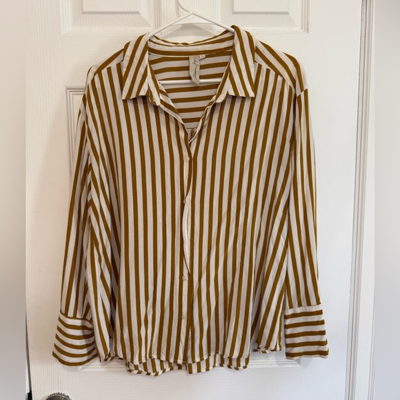 Allison Joy Mustard and White Striped Button-Down Shirt