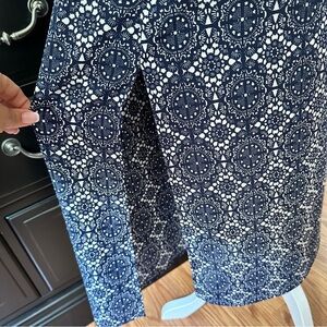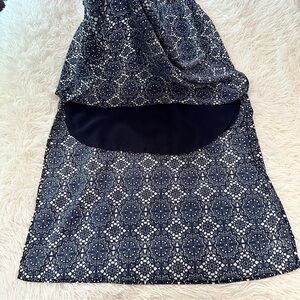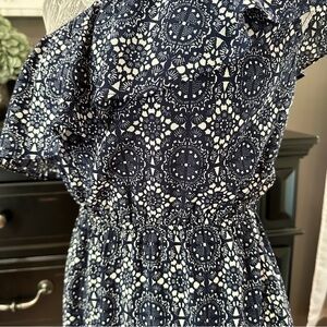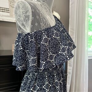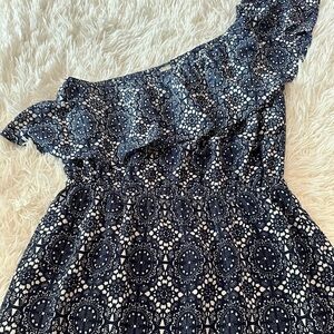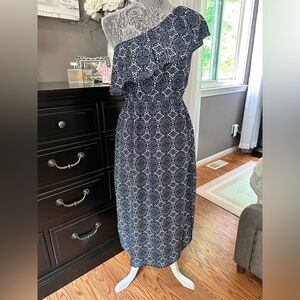 Allison Joy One Shoulder Ruffle Navy White Print Sundress Size M