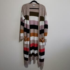 Allison Joy Open Front Gabby Stripe Sweater Cardigan Duster
