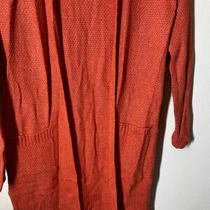 Allison Joy Orange Red Waffle Long Open Front Cardigan Size XS Evereve