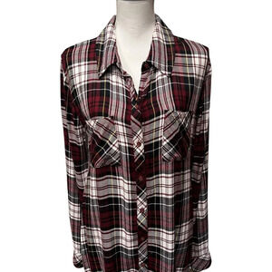 Allison Joy Red Plaid Western Button Down Long Sleeve Shirt Dresss Size Medium