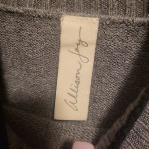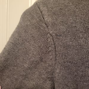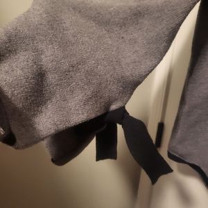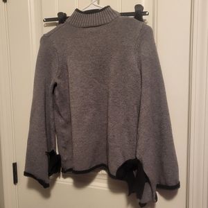 oversized sweater, with side suits up the sleeve and black tie detail. The ribbed neck and black trim accent it perfectly. Adorable business sweater.