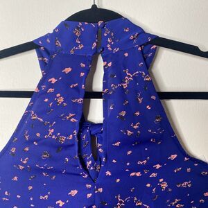 Allison Joy Twist Front Keyhole Halter Back Sleeveless Blue & Peach Tank top XS