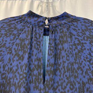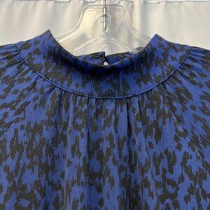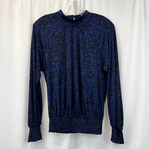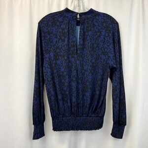 Allison Joy Womens Navy Black Leopard Print Long Sleeve Blouse Top Size Small