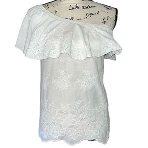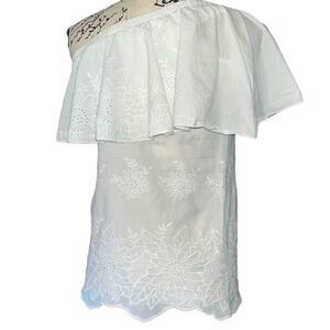 Allison Joy one shoulder embroidered eyelet ruffle blouse XS