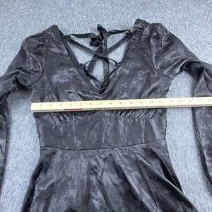 Allison & Kelly Dress Womens Small Black V Neck Puff Sleeves Corset Tie Silk New