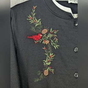 Allison Lane 1X Cardinal Sweatshirt Cardigan Black With White Collar
