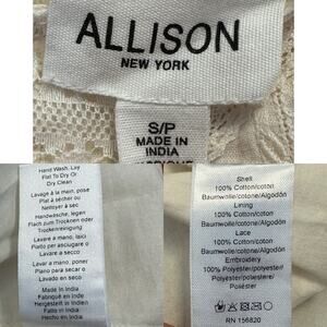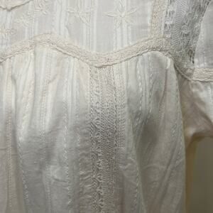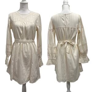 Allison New York Cream Embroidered Lace Cottage Peasant Prairie Boho Mini Dress