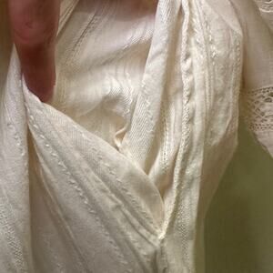Texture: soft, semi-sheer cotton with embroidered texture and lace accents