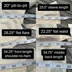 Features: intricate tonal embroidery throughout bodice and sleeves; lace trim details on neckline, cuffs, and yoke; slightly flared long bell sleeves with elastic cuffs; removable matching tie belt; hidden side pockets; back button keyhole closure; fully lined