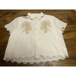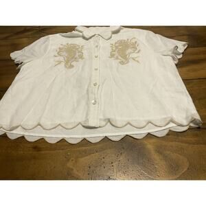 Allison New York Ivory Scalloped Embroidered Seahorse Top Small