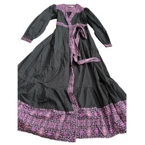 Allison New York Madison Full Wrap Black & Purple Maxi Dress Size Medium