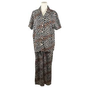 Allison Rhea 100% Cotton Pajama Set Leopard Print Button Top Pants | Medium