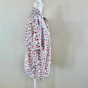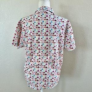 Allison Rhea Button Up Shirt Women’s Medium Multicolor Hearts Print Short Sleeve