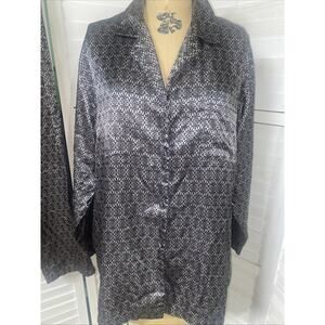 Allison Rhea Satin Pajama Set 2 Piece Pants Shirt Silver Black Sz Large