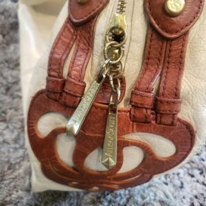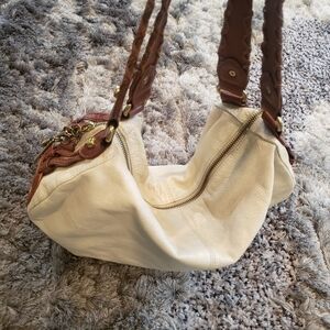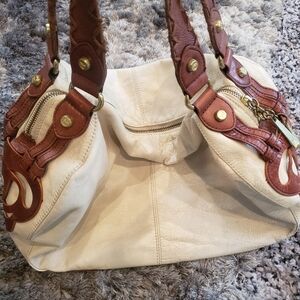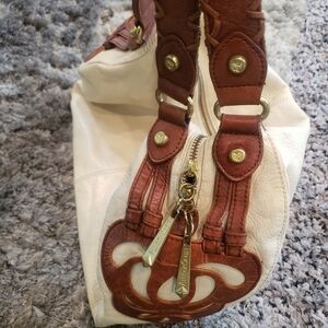 Allison Scott Brown White Leather Large Hobo Purse Shoulder Handbag