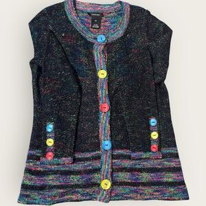 Allison Sheri Artsy Black W/ Rainbow Colorful button up cardigan acrylic vibrant