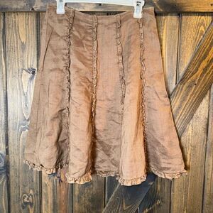 Allison Taylor Aline Ruffle 100% Linen Skirt Brown Sz 8
