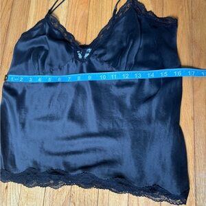 Elegant black camisole with lace trim. Spaghetti straps. Perfect for layering.