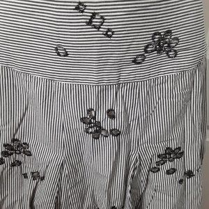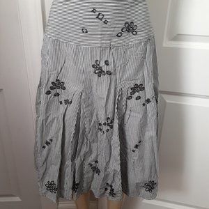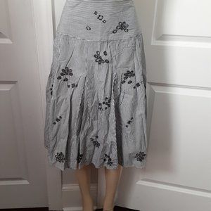 Allison Taylor Blue & White Pinstripe A Line Midi Skirt Applique Flowers