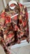 Elevate your wardrobe with this elegant floral ruffle blouse. Featuring a beautiful blend of brown, orange, tan and red, this top is versatile and chic.