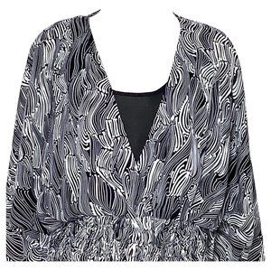 Allison Taylor; Womens; Size Large; Top Blouse Shirt with attached black sheer tank; V-Neck (round neck at the tank top); 3/4 Sleeves; Black White; Abstract print; Drop Waist (Shirred); 100% Polyester; Career Wear / Casual Wear; Great pre-loved condition. No holes, stains, or rips