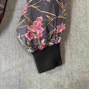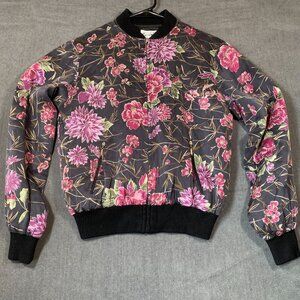 Allison Taylor Petite Floral Bomber Jacket With Ribbed Trim & Front Zip Womens S