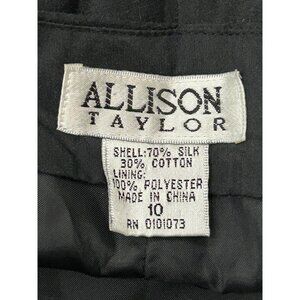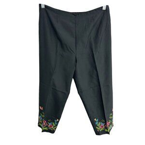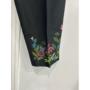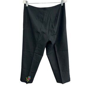 Allison Taylor Womens Black Capris Pants Floral Embroidered Hem Silk Blend Sz 10