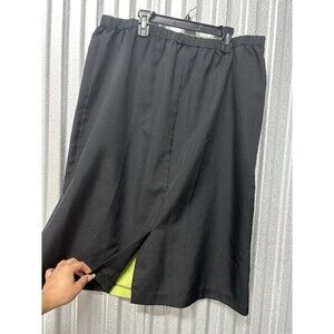 Allison Woods Plus 22W 2-Pc Skirt Set Black Green Accent Button Down Church Work