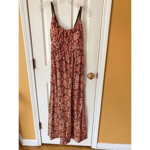 Allison Britney Stretchable Spaghetti Strap Midi Sundress Orange Boho Sz L