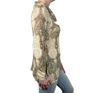 Allison Brittany Cream And Brown Cowl Neck Bohemian Top