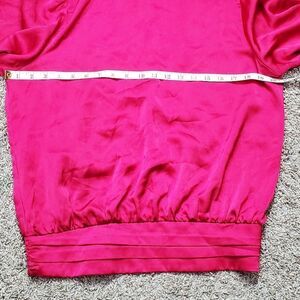 (KK) Allison Joy Raspberry Pink Satin Pull-Over Blouse, Elastic Detail on Waist & Sleeves, Size Large, No Flaws