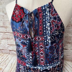 Allison Joy sleeveless chiffon shift dress tassel crochet