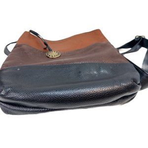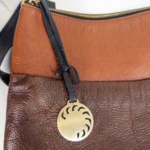 Allo Crossbody Bag Genuine Leather Three Tone Brown Black Medium Boho Purse