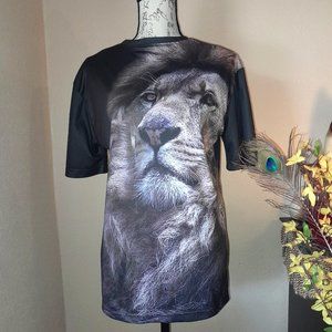This 3D allover print Lion t-shirt is really beautiful! Listed as Men's but is really a #Unisex shirt. There is one tiny flawed area on the R-side of the shirt (see photos).