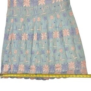 Allover Floral Embroidered Skirt Womens Sz S Light Blue Tiered Hem Maxi Pull-On