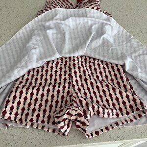 Allover Geometric Print One-piece Swimsuit, V Neck Tummy Control Skirted Bathing Suits, Women's Swimwear & Clothing