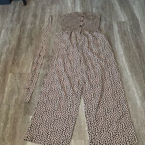 Shirred tube top with tie belt. NWOT never worn. 96% polyester, 4% elastane. Inseam:27.2 inch, Bust:33.9-53.5 inch, Waist Size:30.7-44.9 inch, Hip Size:46.5 inch. Apricot color.