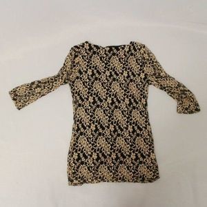 3/4 sleeve tan and black lace top from Alloy. The body is lined but the sleeves are sheer.