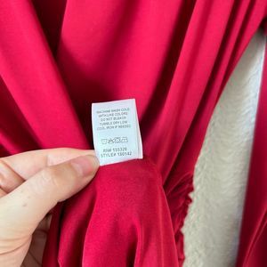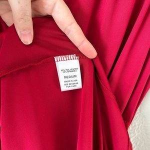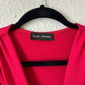 Alloy Apparel tall red faux wrap dress. Asymmetrical hem. New, tags fell off, tried on never worn. Size medium tall. Stretchy material. Flattering knot at the waist.