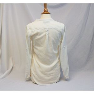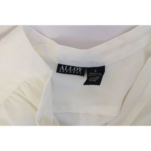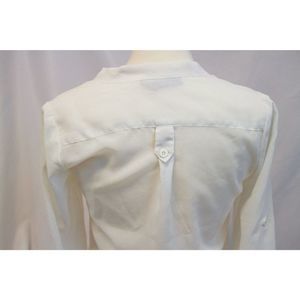 Sheer chiffon white shirt from Alloy. Long in the back, shorter in the front. Long sleeves with collar. Single front pocket. Can roll up the sleeves and fasten or wear all the way down.
