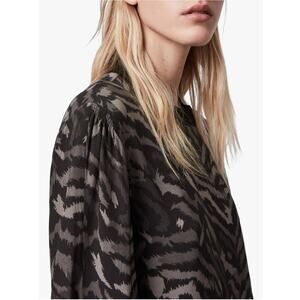 Allsaints Animal Print Long Sleeve Peplum Fayre Blouse, Black Gray sz S